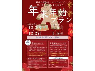 年末年始限定!!超お得なキャンペーンを実施いたします!貸出12/28(土)9:00〜18:00返却1/6(月)9:00〜18:00上記の期間のレンタル料金なんと30%OFF!!この機会にぜひご利用ください!お問い合わせは電話番号:0955-56-8211まで!※免責保障・免責保障ワイドの加入が条件となります。他注意事項は画像をご確認ください。