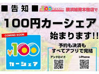 レンタカーのご予約はお電話、100円レンタカーHP、専用アプリから受付を行っておりますので、みなさまのご予約、お待ちしております!