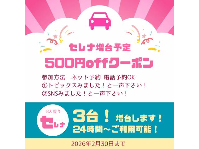 ミニバンが当店に増台します!!御予約開始までもうしばらくお待ちください!